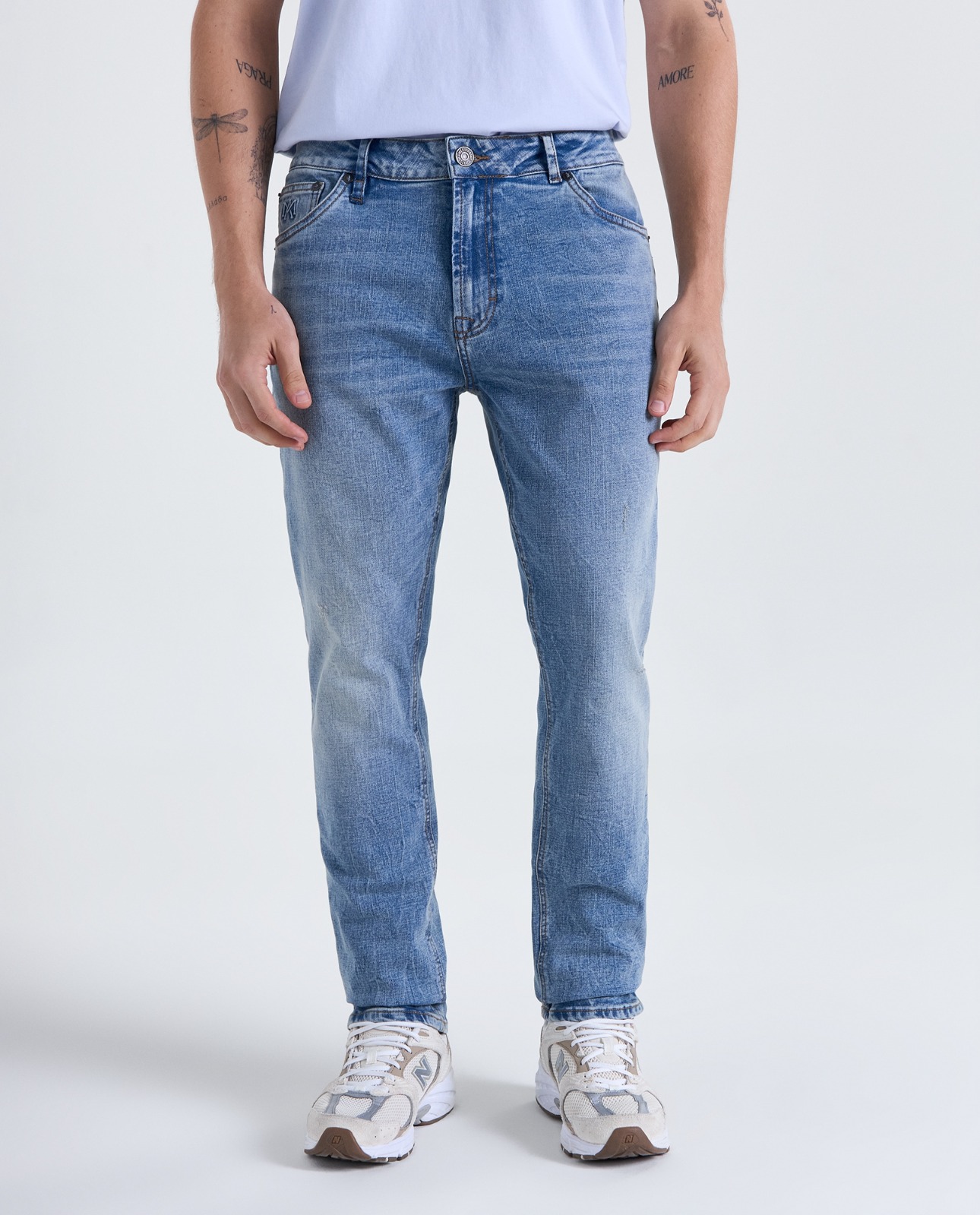 ean Slim Tono Medio Ajuste Perfecto Hombre Este jean slim conecta la herencia de calidad Americanino con la libertad total de movimiento. Confeccionado con tecnología de estiramiento que evoluciona contigo, te va a encantar cómo se adapta perfectamente a tu silueta. Súper versátil para expresar tu libertad de autoexpresión en cada aventura urbana. Ideal para quien toma decisiones intencionadas de estilo y busca la interpretación personal que se adapta a ti. Especificaciones: Composición técnica de 64% algodón que aporta suavidad natural y transpirabilidad, combinado con 31% poliéster para una durabilidad excepcional y resistencia al desgaste. El 3% de rayón caída añade fluida y 2% de elastano proporciona elasticidad perfecta para libertad de movimiento. Silueta delgada con tiro bajo que estiliza la figura, bota ajustada que define la pierna. Acabado medio balanceado con rotos recocidos artesanales que añaden carácter auténtico. Color azul medio versátil que combina con múltiples tonalidades. Cómo se siente: Se siente increíblemente suave al tacto gracias al algodón premium, mientras que la tecnología de estiramiento te da esa sensación de segunda piel que se mueve contigo. La textura del denim es súper agradable con un peso perfecto que no se siente ni muy liviano ni muy pesado. Te va a encantar cómo abraza tu cuerpo sin restricciones, brindándote comodidad todo el día sin perder la forma. Cómo es el fit: El ajuste slim es genial porque define tu silueta sin ser restrictivo, gracias al tiro bajo que alarga visualmente las piernas. La bota ajustada crea una línea limpia y moderna que funciona perfecto con cualquier tipo de calzado